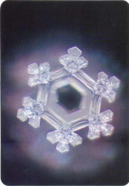 Многие читатели просили меня фотографировать и печатать изображения полученных мною кристаллов воды. Я решил создать из этих фотографий набор карточек, напоминающих колоду гадальных карт, чтобы мои читатели могли использовать их для достижения практических целей в жизни. Эта колода состоит из 48 карт, которые, подобно мастям в обычных картах, разделены на четыре группы по 12 карт в каждой: карты Исцеления, карты Мудрости, карты Силы и карты Земли.