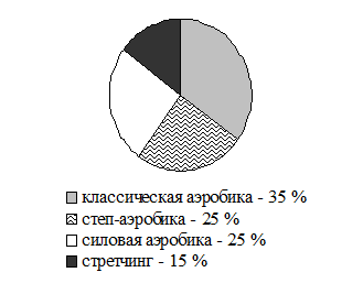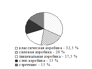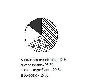 На рис. 1 представлено соотношение направлений аэробики в экспериментальной методике.