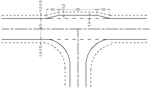 При примыкании и пересечении дорог к дорогам с НИД выбирают тип пересечения и примыкания простой необорудованный (см. рисунок 6).