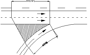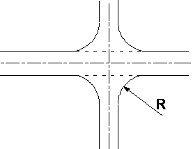 6.1.6 Наименьший радиус кривых при сопряжении дорог в местах пересечений и примыканий принимают 15 м. На дорогах IVА-п и IVБ-п при движении автопоездов (более 25 % в составе потока) радиусы кривых на съездах увеличивают до 30 м.