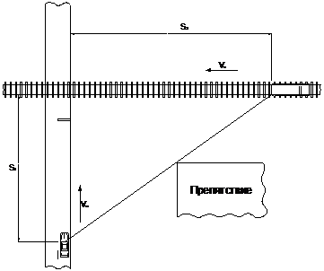 Рисунок 12 - Схема расчета минимального расстояния видимости на пересечении с железной дорогой