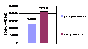Для региона в целом на сегодняшний день наблюдается естественная убыль, объясняемая значительным снижением рождаемости и увеличением смертности. Разница между этими показателями наглядно представлена на рисунке 3.