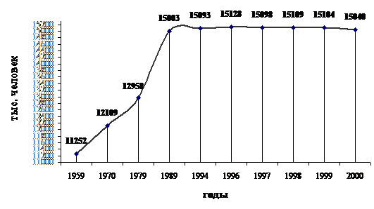Рисунок 1. Динамика численности населения Западно-Сибирского района.
