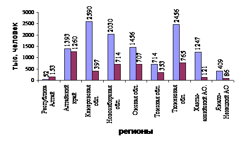 Таблица 1. Численность населения регионов Западно-Сибирского района