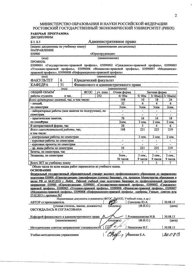 В результате изучения курса «Административное право» студент должен: 1) Знать: - основные положения, сущность и содержание основных понятий, категорий и институтов административного права, изучение которых направлено на формирование нетерпимого отношения к коррупционному поведению, способствующих воспитанию уважительного отношения к праву и закону; - основные положения административно-правовой науки, сущность и содержание основных понятий, категорий, институтов административного права, правовых статусов субъектов административного права, административных правоотношений; - понятие и виды правовых актов органов исполнительной власти, отличия актов применения права от нормативных административно-правовых актов; - систему административно-правовых методов, положения действующего административного законодательства и правоприменительную практику, необходимую для профессиональной деятельности, связанной с обеспечением законности и правопорядка, безопасности личности, общества, государства; - основные положения, сущность и содержание базовых понятий и категорий административного права, действующее административное законодательство, изучение которых способствует формированию навыков и умений по выявлению, пресечению, раскрытию и расследованию административных и дисциплинарных правонарушений при осуществлении профессиональной деятельности; - основные положения, сущность и содержание основных понятий и категорий административного права, норм действующего административного законодательства, изучение которых способствует формированию навыков и умений по выявлению коррупционного поведения субъектов административного права и содействию его пресечению, а также способности давать оценку коррупционному поведению; - основные термины и понятия, виды и методы проведения юридической экспертизы нормативных правовых актов органов исполнительной власти, положения действующего законодательства об экспертизе нормативных правовых актов и их проектов, в том числе в целях выявления в них положений, способствующих созданию условий для проявления коррупции; - особенности правового статуса участников административно-правовых отношений, требующих правовой оценки с целью дачи квалифицированных юридических заключений и консультаций; - действующее законодательство Российской Федерации, международно-правовые нормы, нормативно-правовые акты, регулирующие различные группы административно-правовых отношений, требующих правовой оценки и квалификации, а также другие источники права; - основные положения и категории отрасли административного права, связанные с регулированием общественных отношений, требующих правовой квалификации и оценки с целью дачи квалифицированных юридических заключений и консультаций; 2) Уметь: - давать оценку социальной значимости правовых явлений и процессов административно-правовой сферы, выделять и самостоятельно осваивать антикоррупционные нормы административного законодательства; - исследовать фактические обстоятельства, лежащие в основе сложившегося общественного отношения; - выбирать норму административного права, соответствующую конкретным обстоятельствам и подлежащую применению, составляющую материальную основу дела; - определять комплекс административно-правовых нор