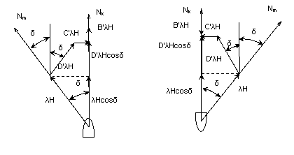 В этом уравнение присутствует сила В'λH, вызывающая полукруговую девиацию. При повороте на обратный курс Sk(180º) направление силы В'λH изменится на противоположное, следовательно, в уравнении изменится ее знак: