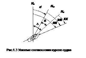 На рис. 1.3 представлены соотношения (1.1)-(1.5). Девиация магнитного компаса δ - это погрешность, в которую входят четыре ее составляющие: