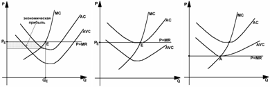 3. Предельная ситуация, когда Р = min AVC. В этом случае следует остановить производство (рис. 25в).