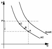 Фирма А снижает цену, так как имеет самые низкие АС, с тем, чтобы фирмы В и С не получали прибыль.
