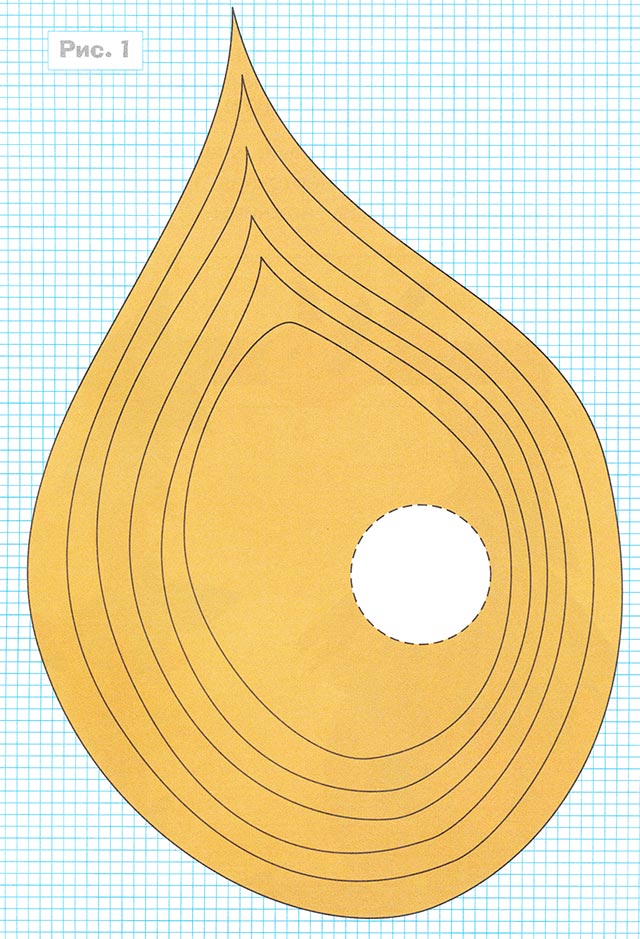1. Вырежьте по трафаретам 6 деталей. Первая, большая по размеру деталь, без отверстия. Следующие детали имеют одинаковую форму и отличаются только размером. Каждая последующая деталь меньше предыдущей на 0,5-1 см (рис. 1).