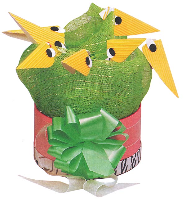3. Из цветного гофрированного картона вырежьте 3 клюва и 3 глаза. Приклейте их к птицам.