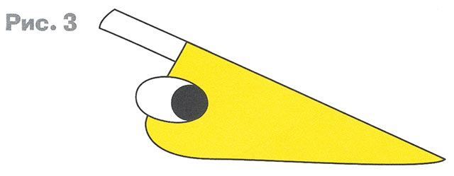 1. Из жёлтой гофрированной бумаги вырежьте 7 клювиков-голов (рис. 1).