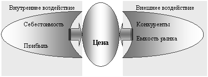 Цена на продукцию зависит от внутреннего и внешнего воздействия (см. рис 2.2).
