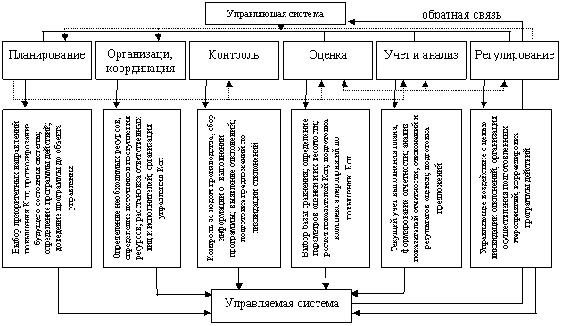 Управляемая система (объект управления) – цеха, службы, отделы, где осуществляются процессы выполнения заданной программы, и которые информируют субъект управления о ходе её выполнения, возникающих отклонениях, их причинах и виновниках. На основании полученной информации орган управления проводит анализ, вносит корректировки, снова дает команды по информационным каналам прямой связи.