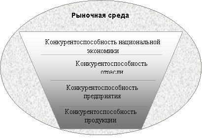 В частности, многие авторы подчеркивают, что конкурентоспособность представляет собой сложное многоуровневое понятие, анализ и оценку которого необходимо теснейшим образом увязывать с конкретным конкурентным полем, зависящим от условий формирования конкурентной среды.