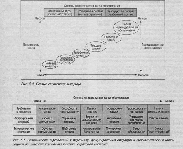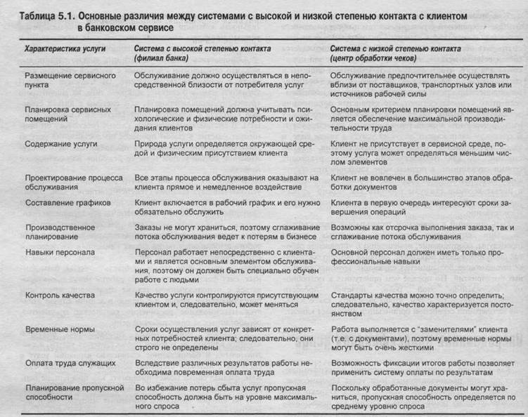 В табл. 5.1 приведен пример различий требований к услугам для двух крайних степеней контакта с клиентами.