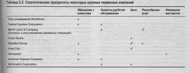 Сервисная стратегия начинается с выбора операционной направленности, т. е. с определения достигаемых приоритетов (Performance Priorities), на основе которых фирма, работающая в сфере обслуживания, будет конкурировать на рынке. Эти приоритеты включают следующее.