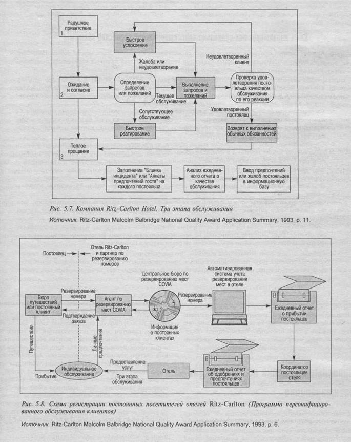 Подход компании Ritz-Carlton описан в приведенных ниже выдержках из заявки на получение компанией премии Болдриджа и из беседы со Скоттом Лонгом, руководителем отеля Huntington Hotel, в Пасадене, штат Калифорния. Рис. 5.7 наглядно отображает официальную процедуру обслуживания.