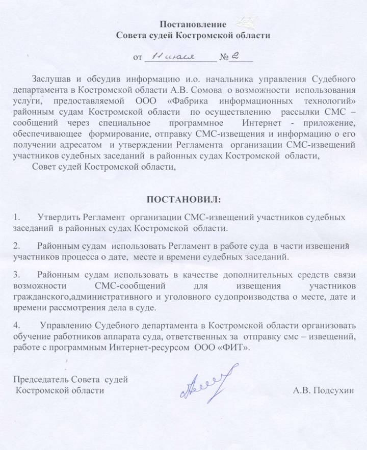 1.2. Регламент направлен на реализацию положений ст. 113 ГПК РФ, предусматривающей извещение или вызов в суд лиц, участвующих в деле, с использованием иных средств связи и доставки, обеспечивающих фиксирование судебного извещения или вызова и вручение его адресату, а также Постановления Пленума Верховного Суда Российской Федерации от 9 февраля 2012 г. № 3 «О внесении изменений в некоторые постановления Пленума Верховного Суда Российской Федерации, разъясняющего возможности использования в качестве дополнительных средств связи СМС-сообщений для извещения участников гражданского, административного и уголовного судопроизводства о месте, дате и времени рассмотрения дела в суде.