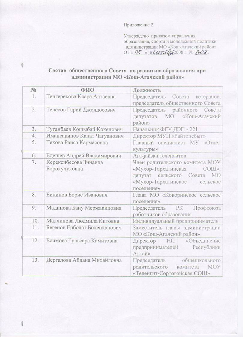 Об утверждении «Положения общественного Совета по развитию образования при администрации МО «Кош-Агачский район» и его состава