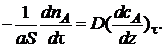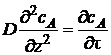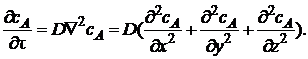 В общем случае концентрация меняется как в пространстве, так и во времени. Изменение концентрации вещества А во времени в результате молекулярной диффузии описывается вторым законом Фика