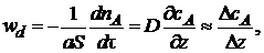 где ∆cА – изменение концентрации на расстоянии ∆z = δ – толщины слоя, через который проходит диффузионный поток. Тогда