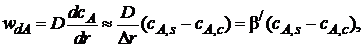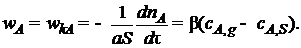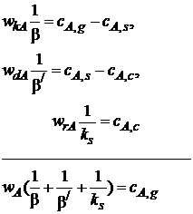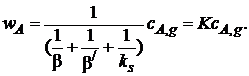 Например, если 1/β>>1/β/ и 1/β>>1/ks, то К≈β, а wA=KcA,g=βсА,g, (7.12)