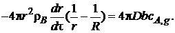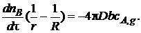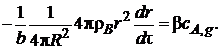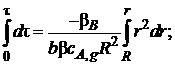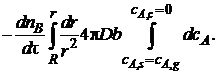 Примем на первом этапе интегрирования, что скорость изменения размеров ядра (она определяется производной dnB/dτ = ρB dVB/dτ) постоянна (квазистационарна) по отношению к скорости диффузии газа, определяемой градиентом концентрации dcA/dr. Тогда уравнение (7.22) с учетом уравнения (7.23) можно записать так: