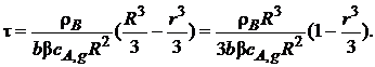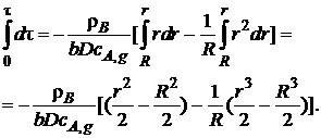 Проинтегрируем уравнение (7.25) по времени от τ = 0 (когда размер ядра равен размеру частицы, т. е. r = R) до текущего времени τ, при котором непрореагировавшее ядро имеет радиус r: