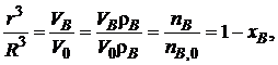 Отношение r3/R3 можно заменить на отношение объема ядра к объему всей твердой частицы (VB/V0 = r3/R3) и, умножив числитель и знаменатель на рB, получим