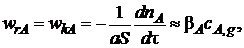 Перепады концентраций ∆сА = сА,g – сА,s и ∆cR = cR,s – cR,g возникают в пограничном диффузионном слое, толщина которого δ зависит от ряда факторов, например в ламинарном потоке, δ = aRe–0,5, где а – линейный размер; Re – число Рейнольдса.