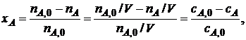 т. е. реагент А взят в избытке, то, как следует из уравнения (1.5), хА < хВ.