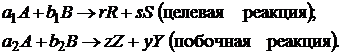 Параллельные и последовательные реакции. Рассмотрим две параллельно протекающие реакции, в которых наряду с целевым продуктом R получаются продукты побочной реакции:
