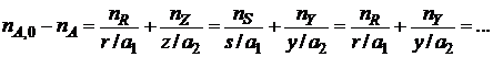 В качестве ключевого реагента, через степень превращения которого выражают количества продуктов, удобно брать реагент, взятый либо в недостатке, либо в стехиометрическом соотношении к другому реагенту. Например, если в качестве такого выбран реагент А, должно выполнятся условие