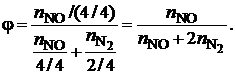 Селективность можно рассчитать по количеству полученных на выходе из реактора продуктов целевой реакции (оксида азота) и побочной реакции (азота):