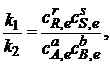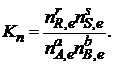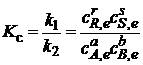 Отношение констант скоростей, называемое константой равновесия, обозначим через Кс. Получаем выражение закона действующих масс: