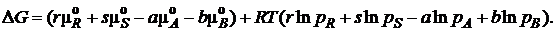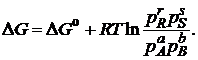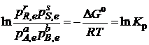 rR + sS, где реагенты (А, В) и продукты реакции (R, S) – идеальные газы. При равновесии справедливо равенство