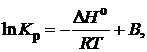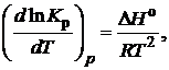 Функциональная зависимость константы равновесия от температуры при постоянном давлении передается уравнением изобары Вант-Гоффа