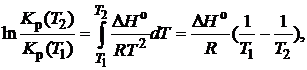 по которому, располагая данными о ∆Н° и Кр для какой-либо одной температуры Т1 можно легко определить значение константы равновесия при другой температуре Т2.