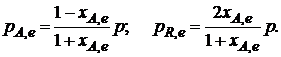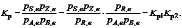 Обозначив общее давление через р, выразим равновесные давления компонентов: