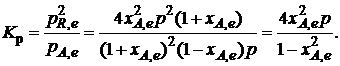 После установления равновесия на 1 моль введенного вещества реакционная смесь будет содержать (1 – хa,е) моль реагента А и 2хa,е моль продукта R. Всего в равновесном состоянии будет находиться