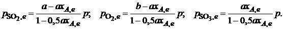 где а, b, n – количество (моль) компонентов исходной смеси SO2, O2, N2, (а + b + n) = 1.