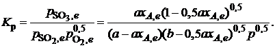 Пример 2.1. Рассмотрим расчет равновесия по известным значениям Kр для реакции окисления диоксида серы: