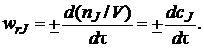 Скорость химической реакции может быть измерена по любому компоненту, участвующему в реакции. Она всегда положительна, поэтому знак перед производной dnJ /dτ должен определяться тем, является ли вещество J исходным реагентом (тогда dnJ/dτ отрицательна) или продуктом (тогда dnJ/dτ положительна). Иногда нельзя определенно сказать, является ли вещество J реагентом или продуктом. Например, при протекании последовательных реакций
