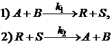 Пример 3.1. Составим кинетическое уравнение по веществам R и А – участникам сложной реакции: