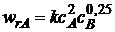 Если реакция, описываемая стехиометрическим уравнением (I), характеризуется различающимися частными порядками по компонентам А и В, наибольшее влияние на скорость реакции будет оказывать изменение концентрации реагента, имеющего больший частный порядок. Например, если кинетическое уравнение реакции, в которой участвуют два реагента, имеет вид
