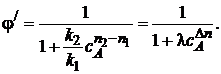 Проанализируем зависимость φ' от концентрации реагента А. Для удобства преобразуем выражение (3.5):