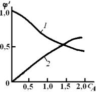 Очевидно, что φ' может быть как возрастающей, так и убывающей функцией от концентрации. Определим характер функции φ'(сА) по знаку первой производной: