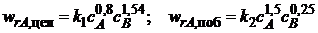2 – n1 = 2,5, k1 =154,5/(кмолъ1,5·ч); n2 = 1; k2 = 10 ч–1