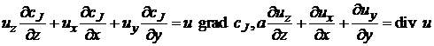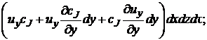 cs(uzdxdy + uxdydz + uydxdz)dτ + [u grad cj + cj div u] dxdydzdτ, (4.2)